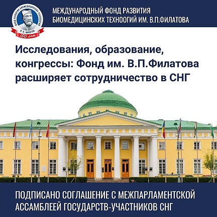 Подписано соглашение о сотрудничестве между Международным фондом развития биомедицинских технологий им. В.П. Филатова и Межпарламентской Ассамблеей государств-участников СНГ (МПА СНГ).