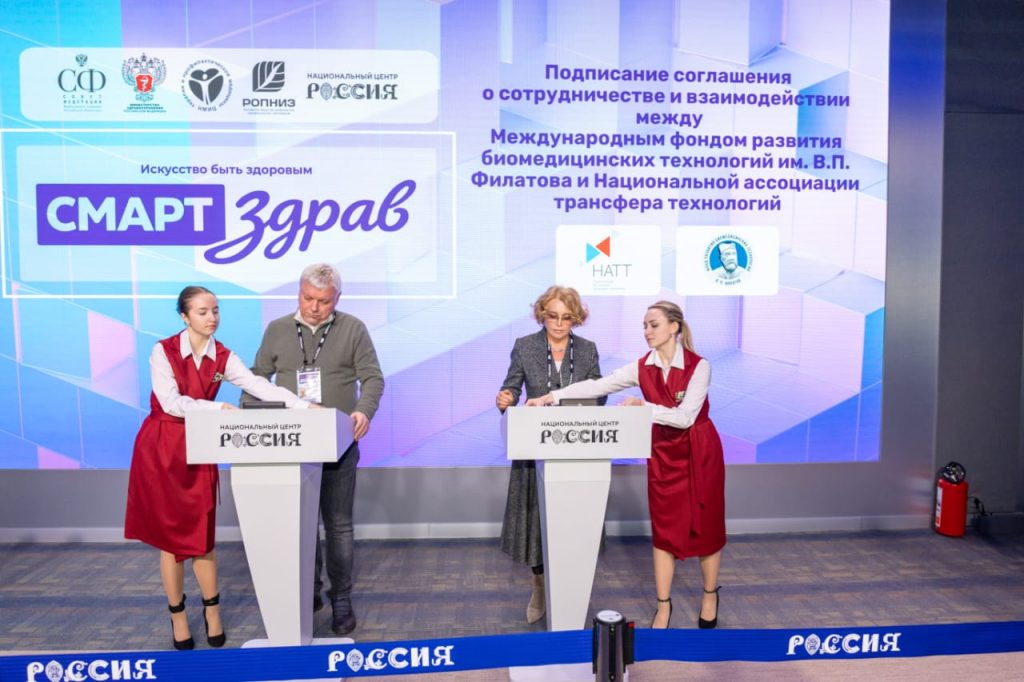 Соглашение Международного фонда развития биомедицинских технологий им. В.П. Филатова с Национальной ассоциацией трансфера технологий (НАТТ) скрепляет партнерство в области инновационного развития на ближайшие 5 лет.